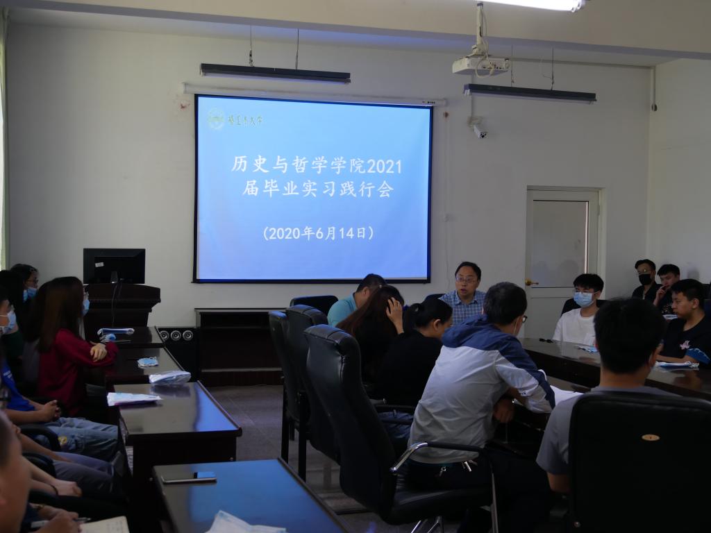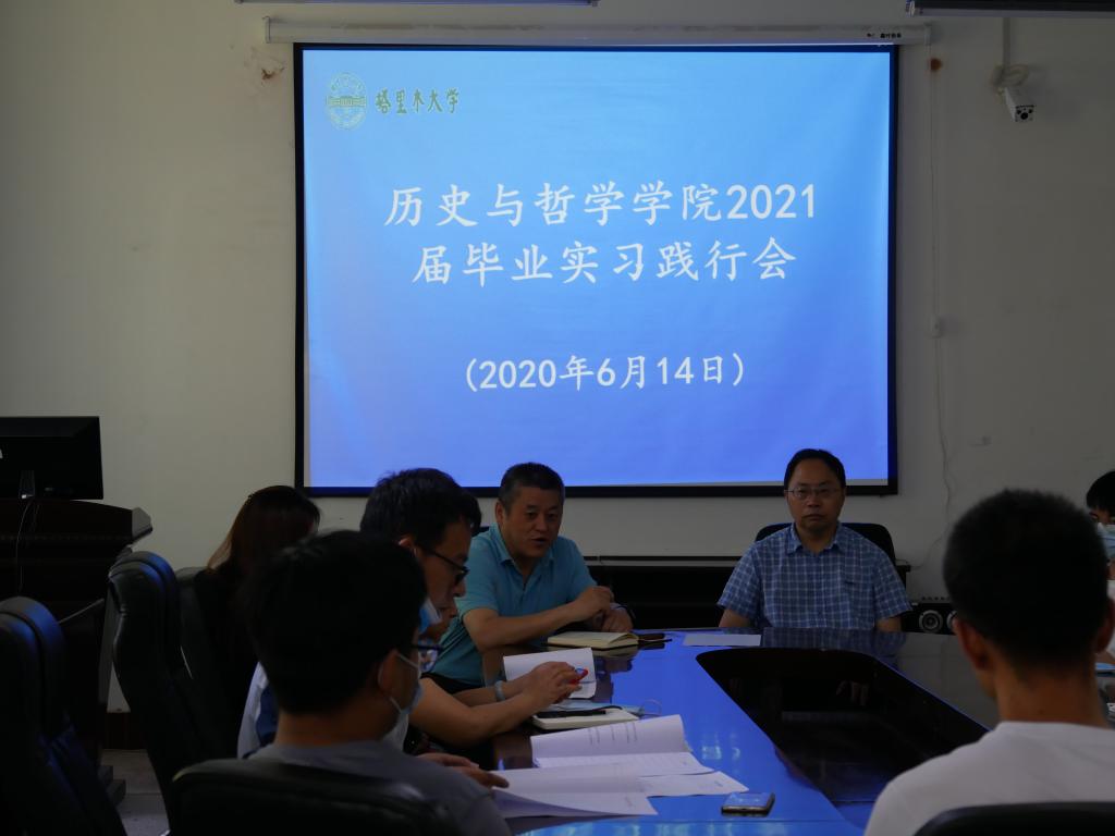 在学院会议室举行2021届本科毕业生毕业实习动员大会。会议由学院党总支书记姚江军主持,院长万朝林、教务办主任陈亚洲、各实习带队教师及历史21班共计40余人参会。2021届毕业生将分赴阿克苏、喀什、和田和兵团第十四师辖区的文博单位参加为期两月的毕业实习。
