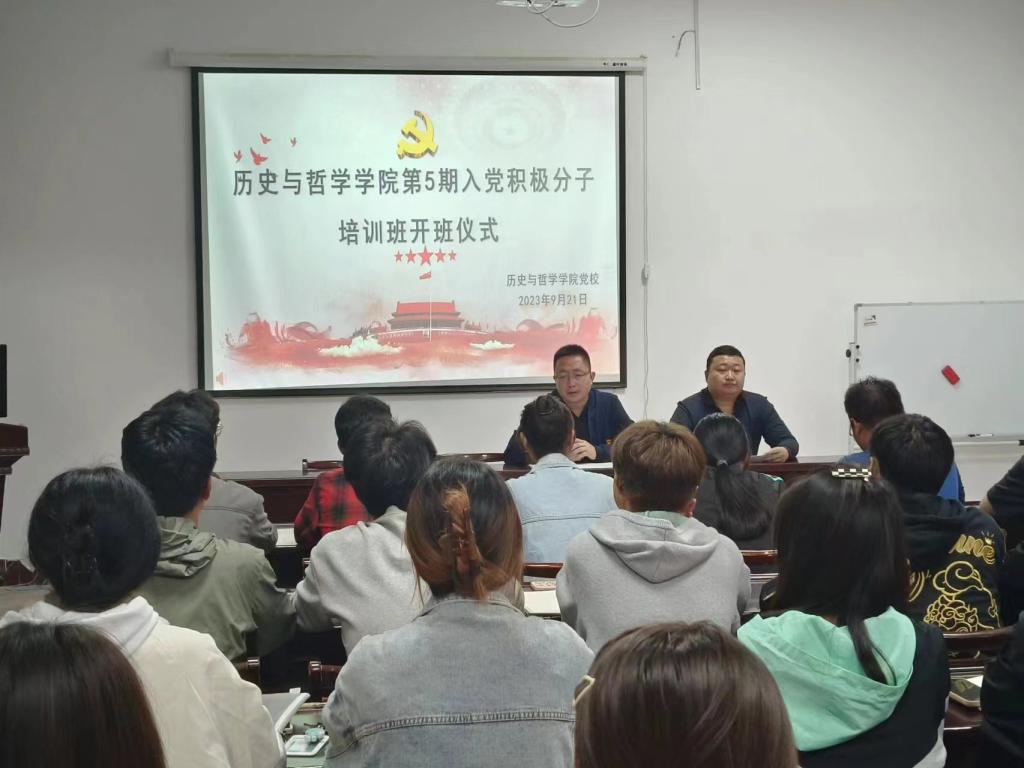 为进一步提升中国共产党党员发展质量,端正学生入党积极分子入党动机,加深对党的认识,9月21日晚9点,历史与哲学学院在202会议室举行第5期入党积极分子培训班开班仪式。学院党委副书记、纪委书记常玉柱同志到会作动员讲话,学院党政办主任张煜辉同志主持仪式,培训班25名学员参加开班仪式。