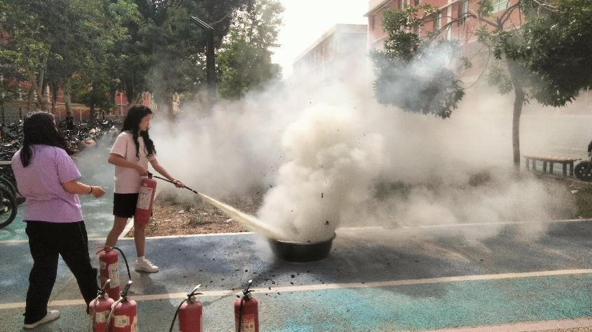 在校学生及教职工积极参与,同时还有保卫部专业消防工作人员亲临现场指导。