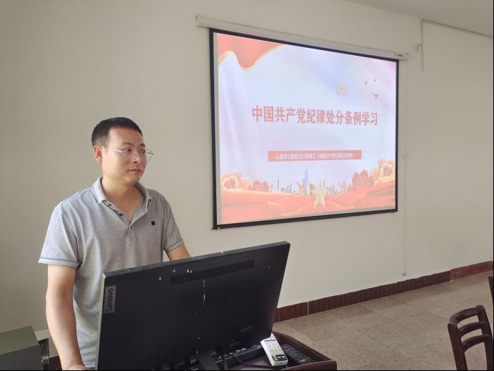 教师党支部书记孙长龙在学院202会议室举办了一场深刻而生动的党纪学习教育专题党课。学院全体教师中国共产党党员参加了此次党课。