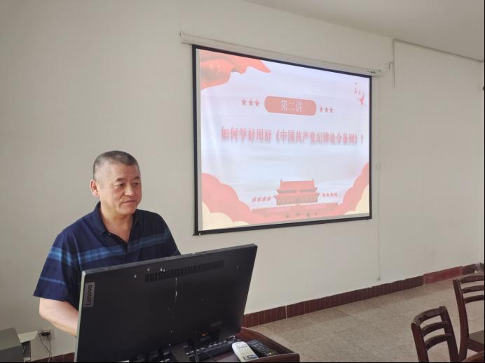 党委书记姚江军在学院202会议室开展了一场专题党纪学习党课。学院全体中国共产党党员参加了此次学习。