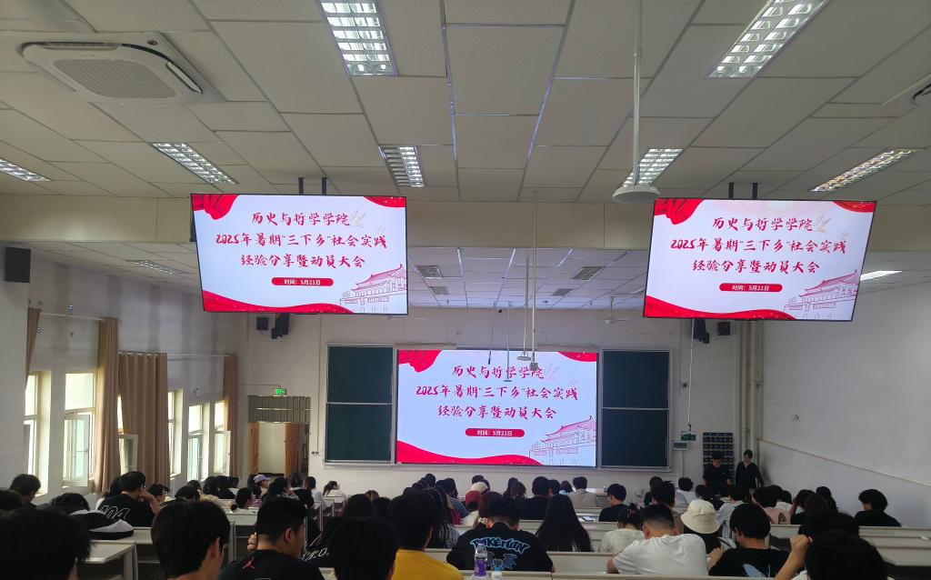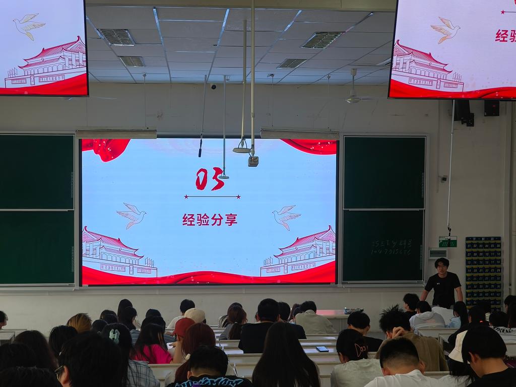 于逸夫楼阶梯教室8举办2025年暑期“三下乡”社会实践活动经验分享暨动员大会。学院团委兼职副书记候心洁主持,社创部部长刘鑫瑞作专题讲解,往届优秀团队代表李方正进行经验分享,2024级全体学生参与。