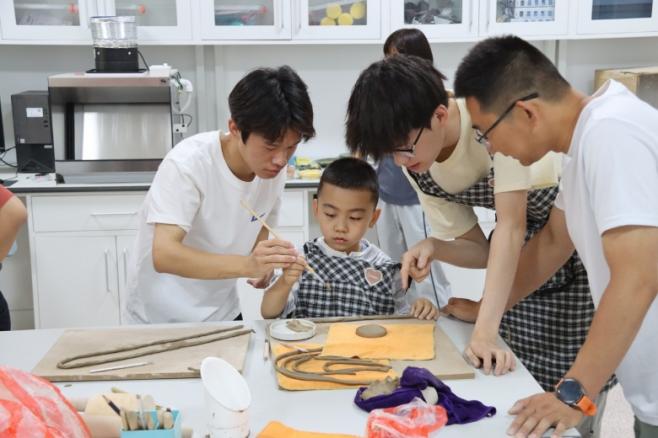在陶艺实验室开展“千年火与土的艺术”彩陶制作研学活动,吸引众多亲子家庭参与。