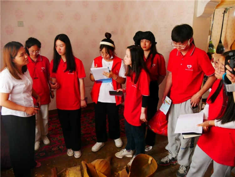 图为团队成员向加依村讲解员了解乐器制作过程。中国青年网通讯员 王泳琪 摄