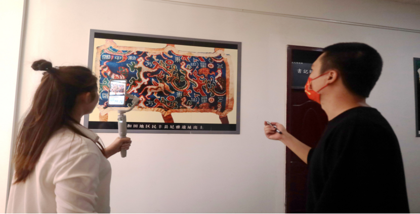 西域文化博物馆中研究生杨国帅早已等候多时,他从进门地砖上的地图讲起,跟新同学们介绍西域文化博物馆的展陈情况与一些文物背后的历史故事。引得新同学们连连赞叹,纷纷表示来到学校后一定要再仔细去参观。