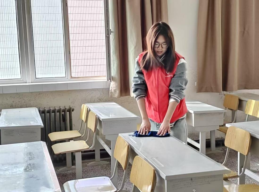 在枣园路片区,志愿者团队以三人小组为单位展开"地毯式"清理。志愿者们用垃圾钳清理路边的烟蒂,并现场设计简易警示牌提醒文明行为。发现并妥善处理倾斜井盖1处,消除了安全隐患。据统计,清扫面积覆盖东区大部,累计清理各类垃圾38袋。二号楼清洁组采用"分区包干"模式,对20间教室的近千套课桌的桌洞、桌面进行清洁,让二号楼的教室焕然一新。