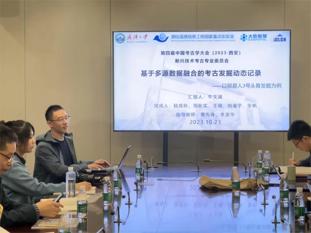 在新兴技术考古专业委员会分会场,博士研究生牛文渊作题为《基于多源数据融合的考古发掘动态记录——以郧县人3号头骨发掘为例》的学术报告。